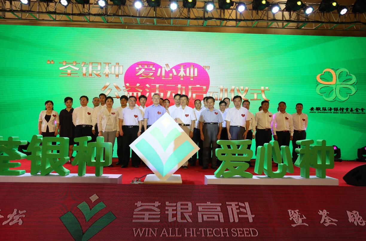 農(nóng)業(yè)部種子管理局張延秋局長、中國種子協(xié)會蔣協(xié)新副會長、中科院韓斌院士、安徽省農(nóng)委朱永東副主任、基金會張海銀理事長、荃銀高科張琴董事長,以及荃銀高科經(jīng)營班子成員、所屬控股子(分)公司負(fù)責(zé)人共同見證并將愛心種子放入愛心池,“荃銀種、愛心種”的公益活動正式啟動。
