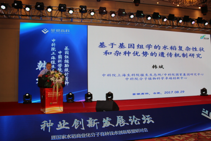中國科學(xué)院上海植物生理生態(tài)研究所是國內(nèi)植物分子科學(xué)的發(fā)源地之一,集聚了一支具有國際視野和卓越創(chuàng)新能力的科學(xué)家團隊,在作物分子設(shè)計育種、現(xiàn)代生物技術(shù)等方面具有國際領(lǐng)先優(yōu)勢。會上,中國科學(xué)院院士、國家基因研究中心主任、上海植生生態(tài)所所長韓斌做主旨演講。